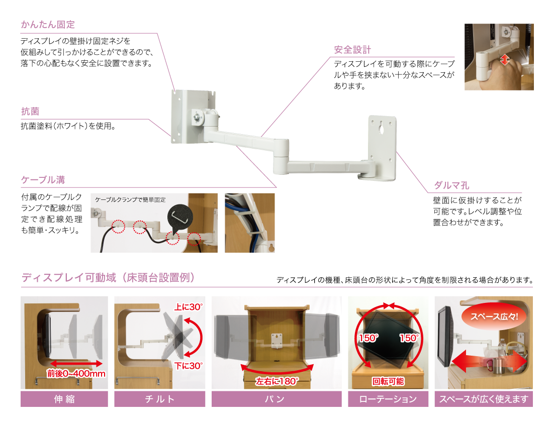 ディスプレイの壁掛け固定ネジを仮組みして引っかけることができるので、落下の心配もなく安全に設置できます。